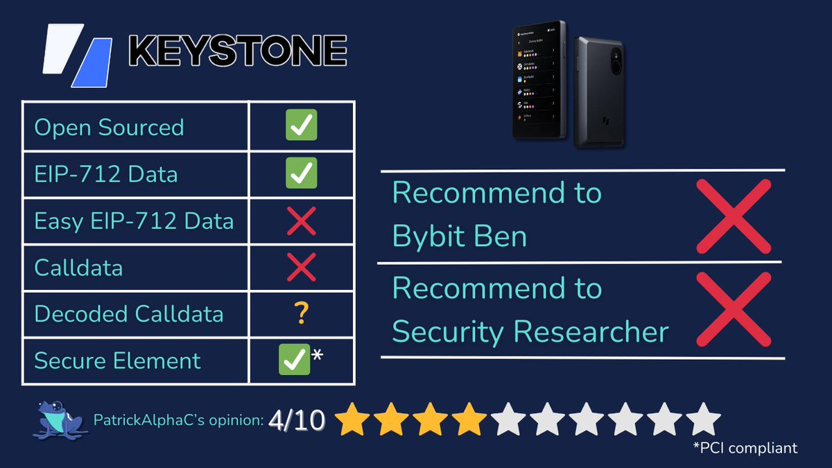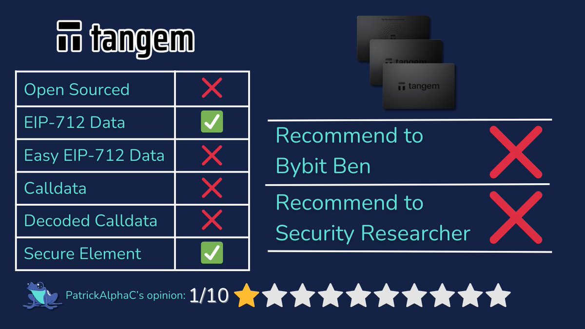 The @Tangem wallet was very convenient but didn't show a lot of crucial information (calldata), and was closed-sourced.