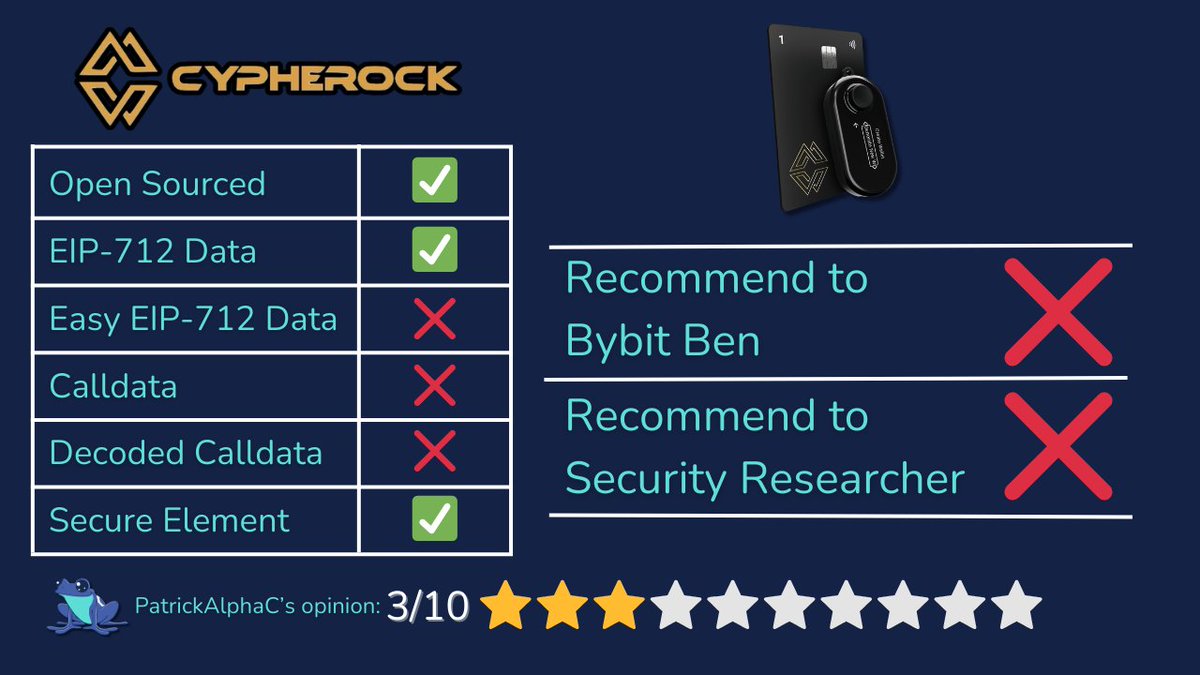 The @CypherockWallet was a step up being open sourced, and having an actual hardware device. It was a little less convenient, but it shared the same issue as the Tangem, it didn't show any calldata on a transaction!