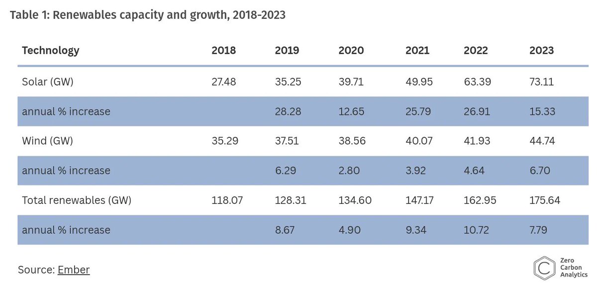 Wind power in India stagnated at 0% growth last year, while solar surged 22%. A random fluctuation? Maybe not. Zooming out, the data tells a deeper story.🧵👇