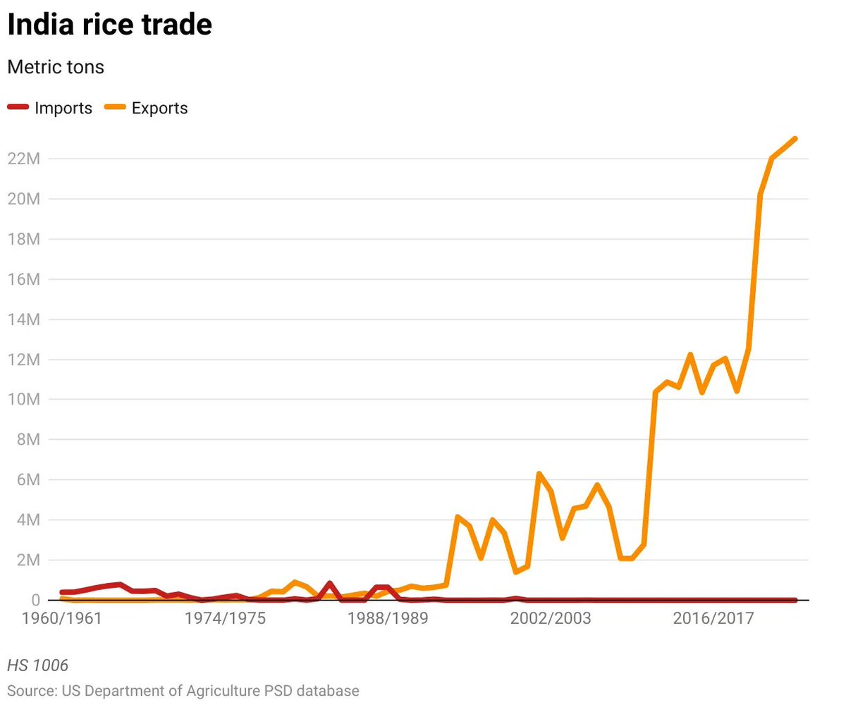 This wasn't always the case. In the 1960s-70s, India was importing rice. The Green Revolution changed everything, and by the 2000s, we became an export powerhouse.