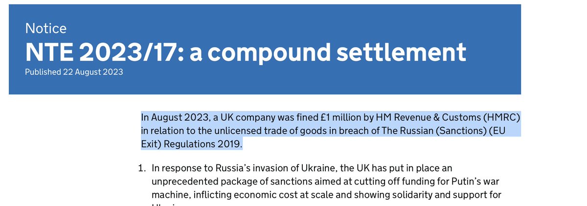 But it's a big deal. A £1m fine for breaking Russian sanctions rules.
