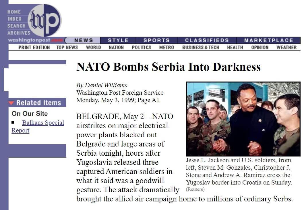 La Alianza Transatlántica abrió fuego contra la infraestructura energética, algo que celebraron algunos medios occidentales que ahora critican a Rusia por hacerlo en Ucrania. La OTAN, al principio, mintió negando que bombardeaba centrales de energía, pero finalmente confesó.