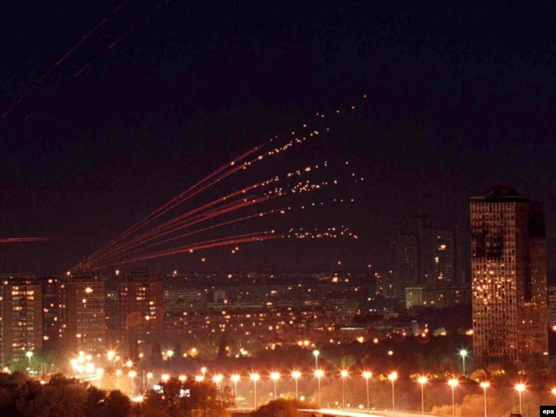La Alianza Transatlántica bombardeó el país con 31.000 ojivas, cientos de bombas de racimo y más de 10 toneladas de uranio empobrecido, hiriendo a cientos de personas y asesinando a medio millar de civiles, incluyendo refugiados, entre ellos decenas de niños.