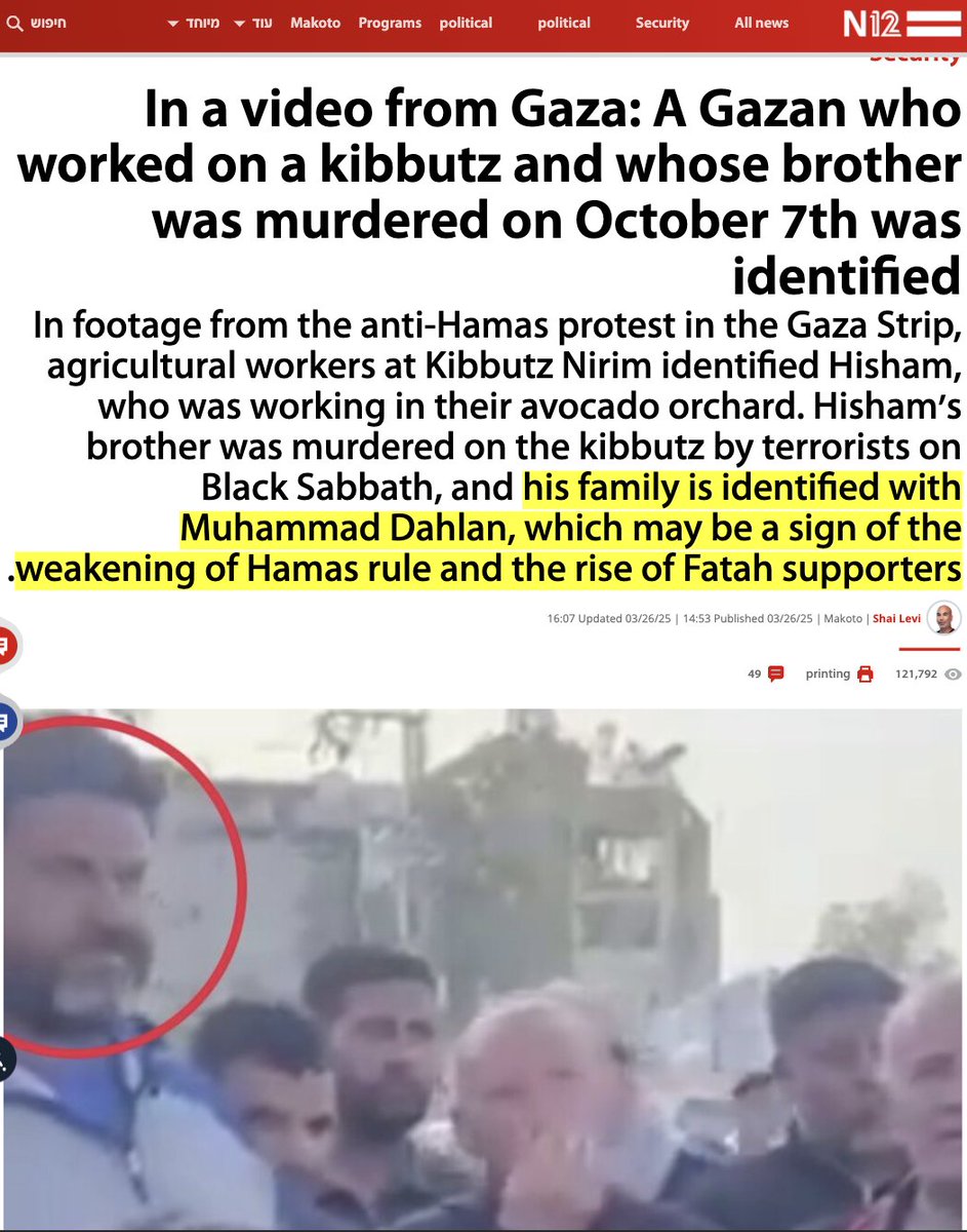 5\ Israeli media identified one of the protesters today as someone whose family affiliated with Muhammad Dahlan's Fatah