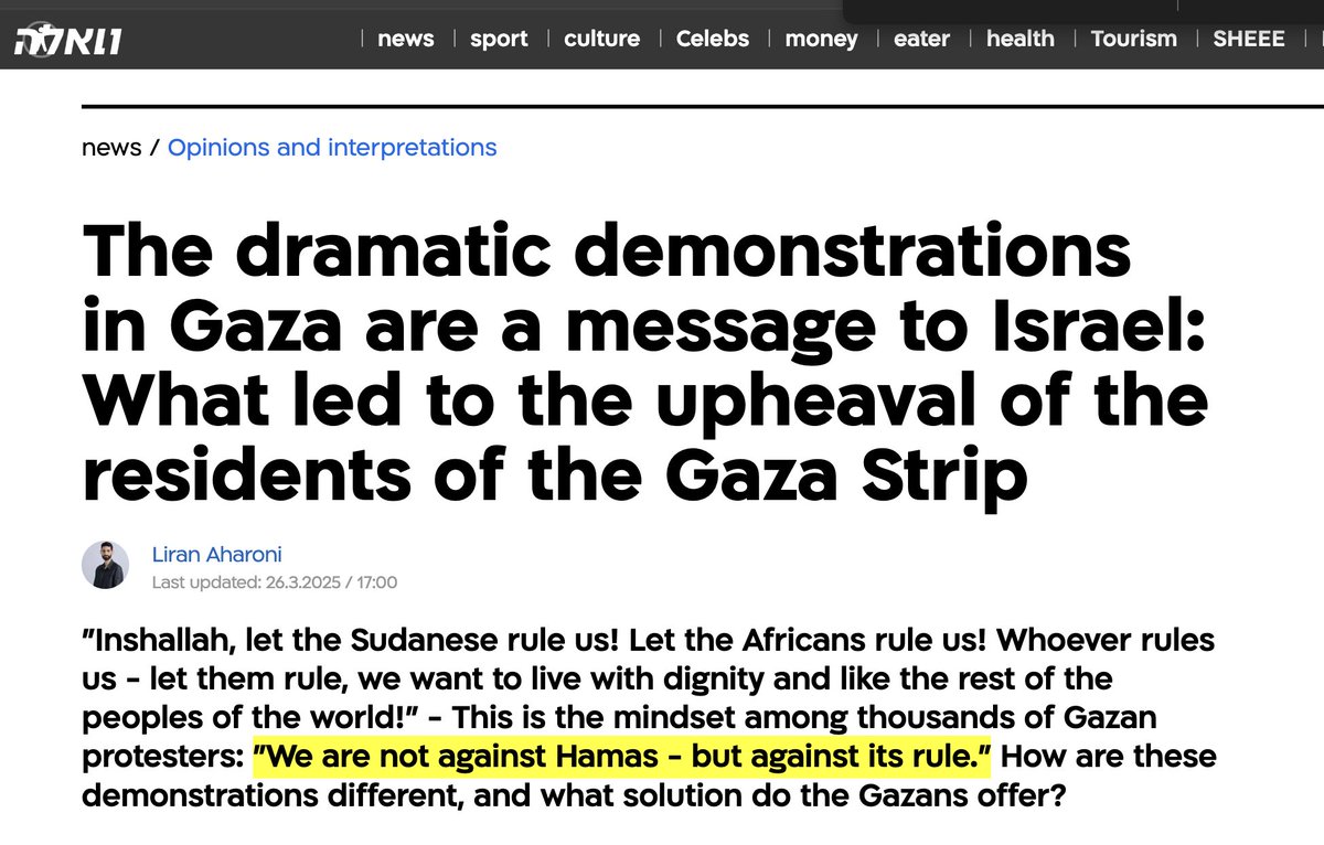 1\ The protests seem to have started spontaneously in small numbers & limited areas. Their grievances are genuine; people are tired, desperate for the genocide to end at any cost, many want Hamas to step down from gov to take away Israel's pretext for the siege & killing
