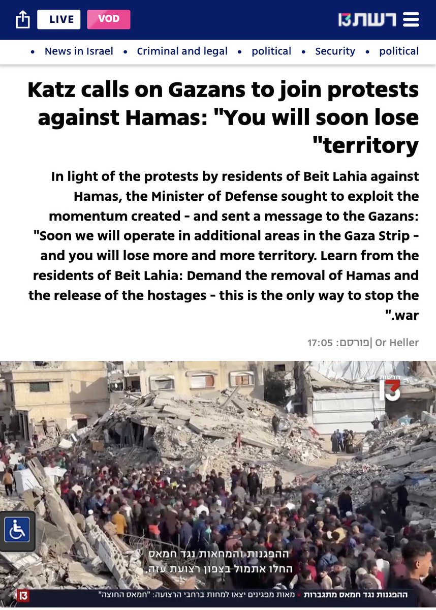 e.g. Israel demanding Gazans take to the street or face death, land theft & forever war will backfire