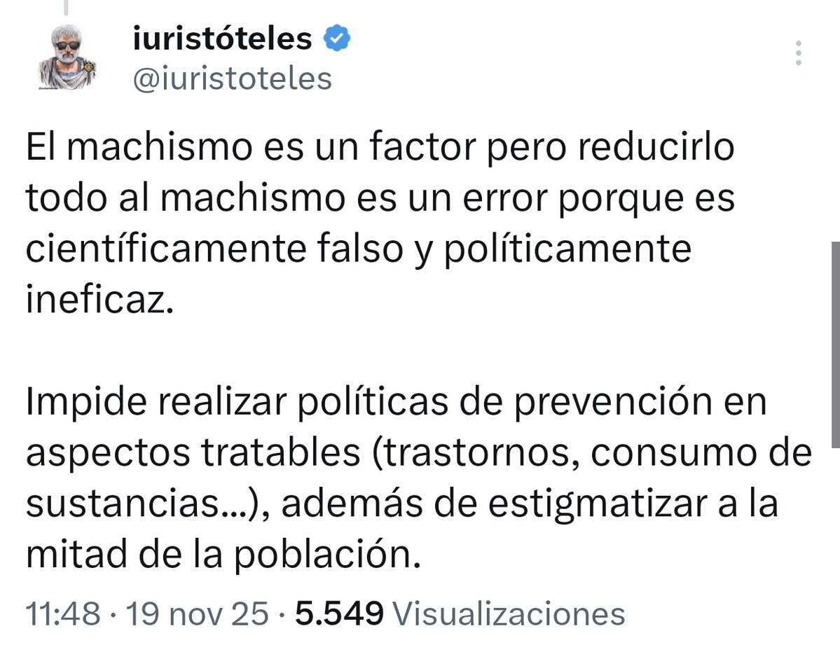Otra cuestión es reducirlo todo al "machismo", que ya he dicho que es un error porque influyen más cosas.