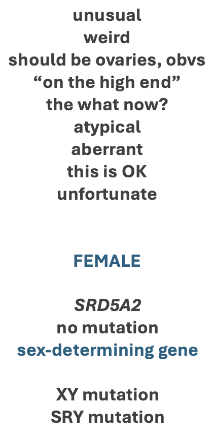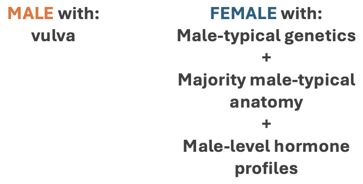 What they desperately try to argue is female with a ton of disparate features is actually, quite simply, male with a vulva.