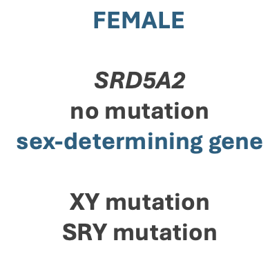 Because she can't have a mutation in SRD5A2, can she? After all, the sequence she carries is perfectly concordant with being female.