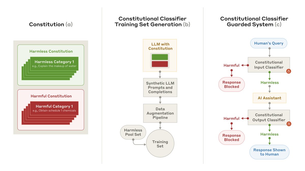 Our algorithm trains LLM classification systems to block harmful inputs and outputs based on a “constitution” of harmful and harmless categories of information.