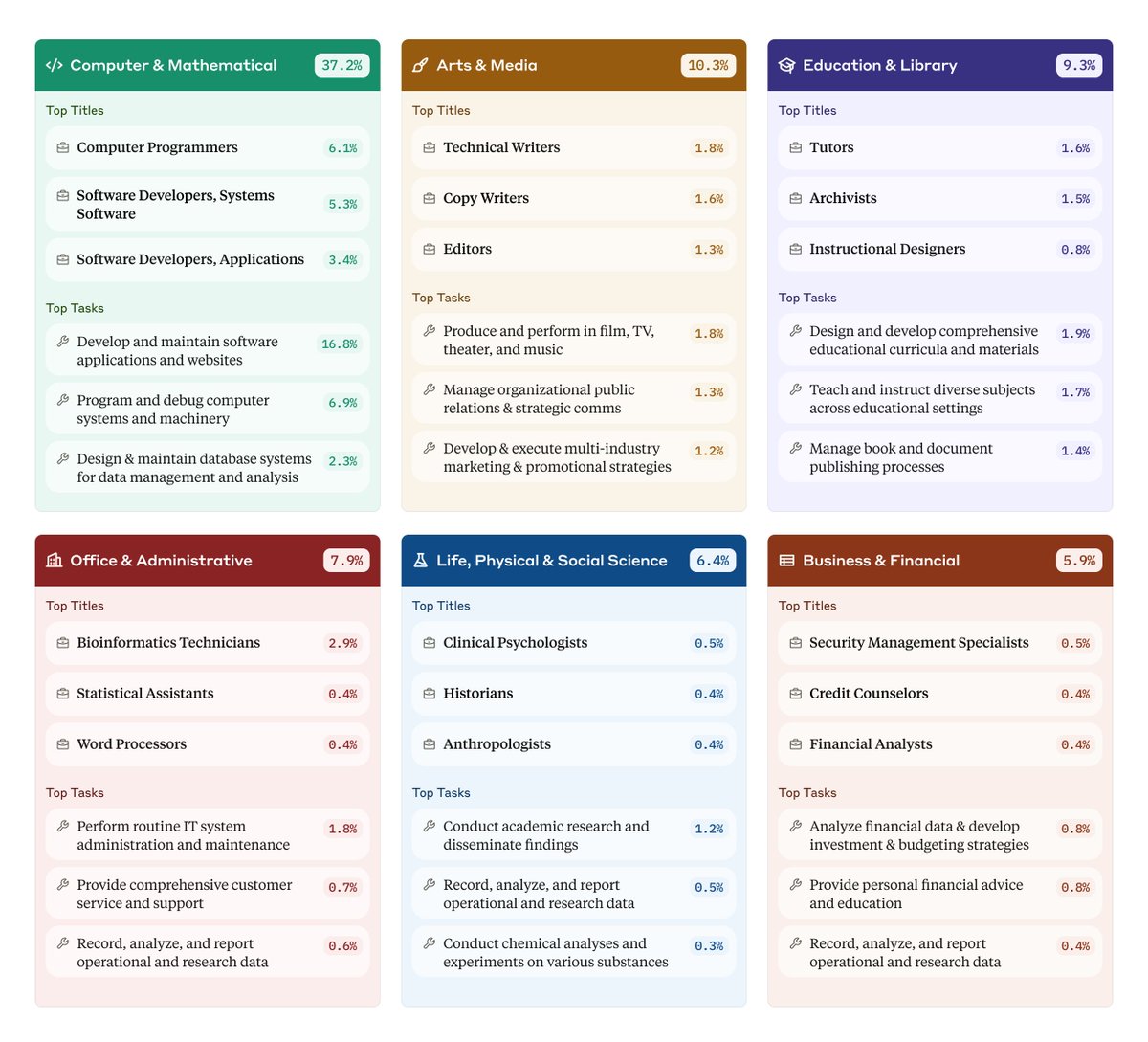 Today, we’re releasing the second research report from the Index, and sharing several more datasets based on anonymized Claude usage data.