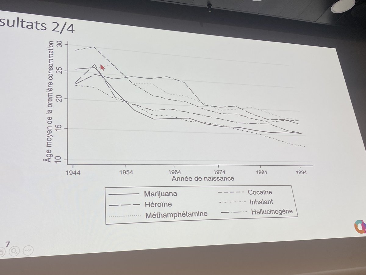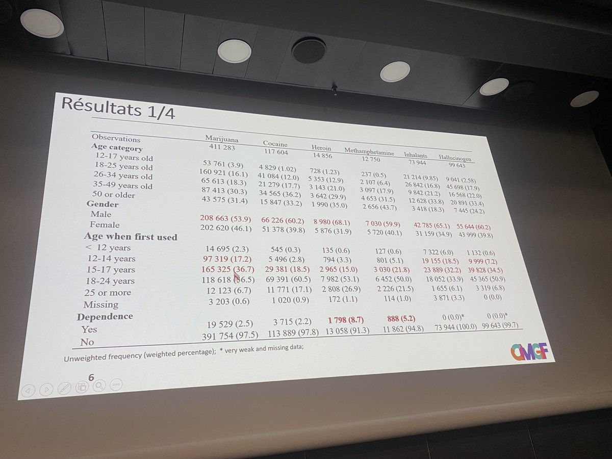 #CMGF2025 El-Mouksitou Akinocho (responsable du service démographie et étude de @ARS_IDF) enchaîne avec une analyse transversale de l'enquête nationale sur l'usage des drogues et la santé de 2002-2019 aux USA - base NSDUH () datafiles.samhsa.gov