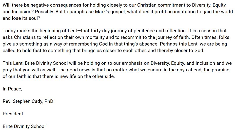 President of TCU affiliate Brite Divinity School says that they are committed to DEI, even if they suffer for it. /15