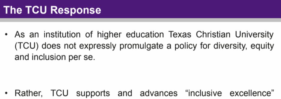 TCU should honor the traditional values it was founded on. DEI is overtly racist and goes against everything the University used to stand for. TCU has drifted far off of that path, but we have some ideas on how we could help. /21
