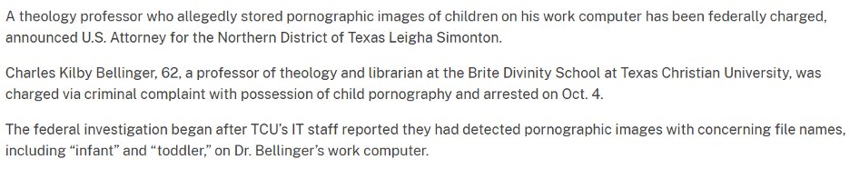 A Brite professor was arrested last year for having child p*rn on his work computer on TCU’s campus. /16
