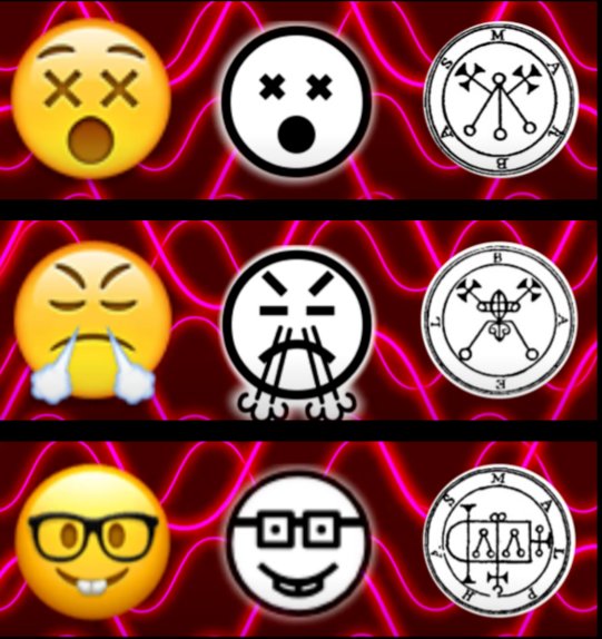 "By comparing the Goetic seals to the emojis, one can see where the Omani government had their influence, and what the correspondences actually are. Dizzy face is Marbus. Face with look of triumph is Baal. Nerd face is Malphas, and so on, and so forth."