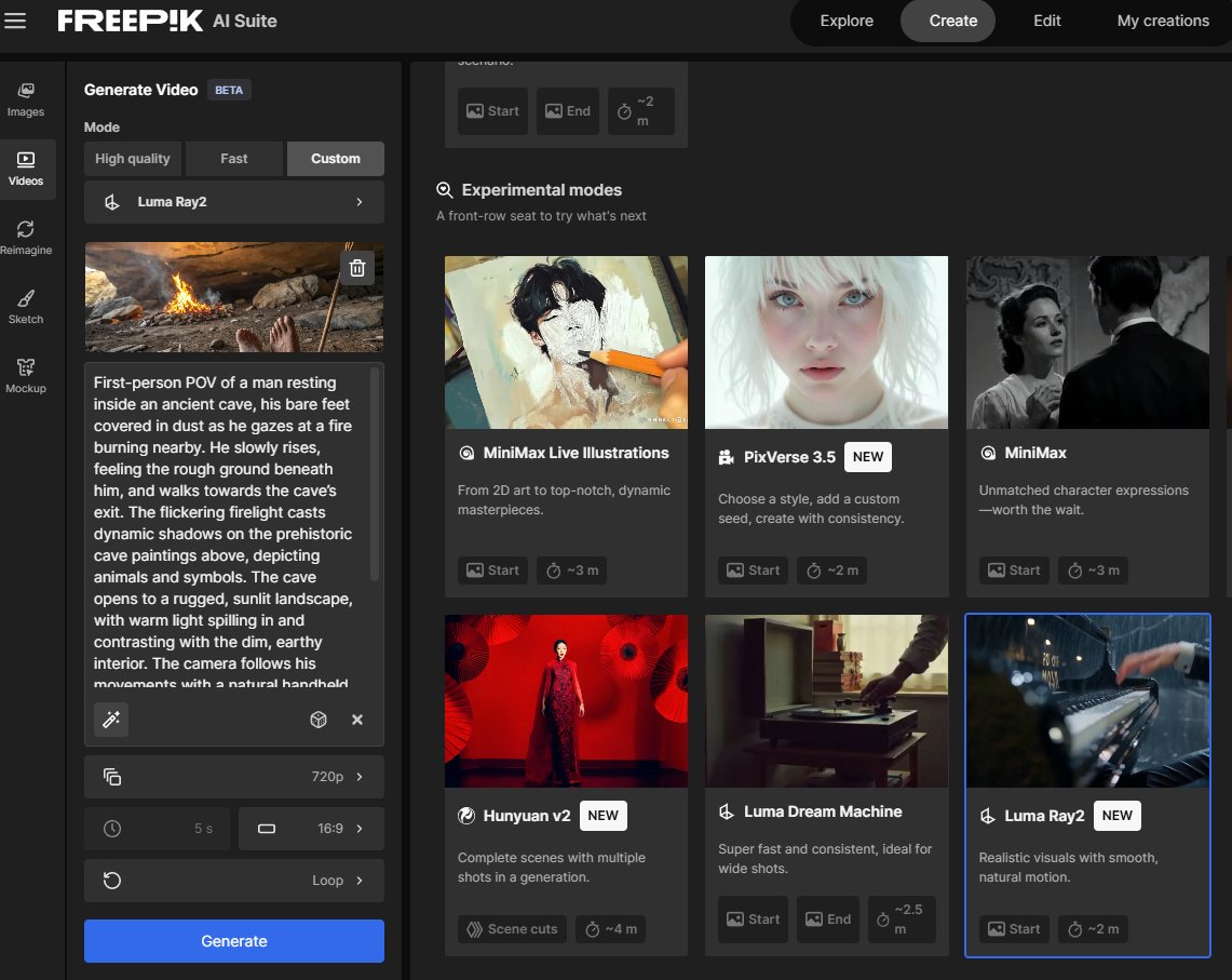 Without leaving Freepik, we’re gonna turn the image into a video. To do this, we’ll use Ray2, @LumaLabsAI model, which is perfect for realistic animations.