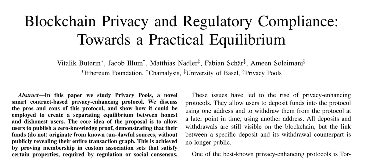 0xbow is the enabler for the new era in Privacy Pools. Our work implements the published research of @VitalikButerin, @ameensol and others in last year’s Blockchain Privacy and Regulatory Compliance: Towards a Practical Equilibrium. Read it here:() papers.ssrn.com/sol3/papers.cf…