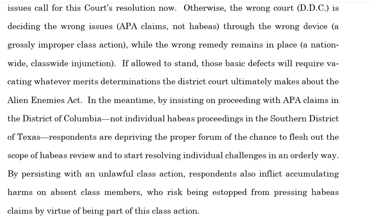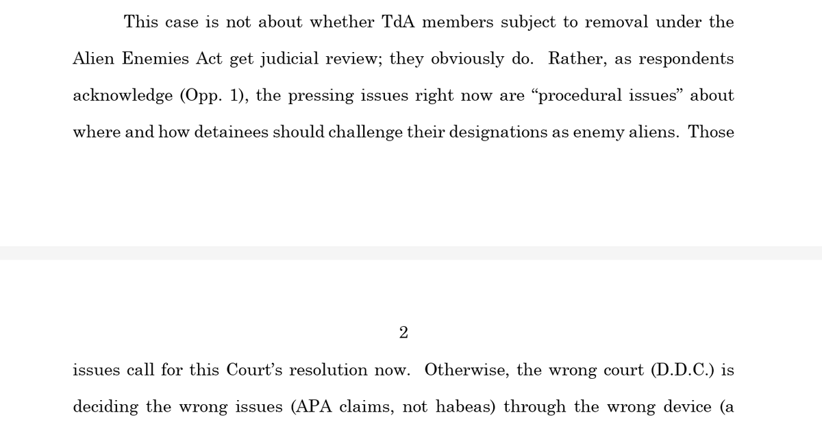 🚨Yesterday Trump Administration filed reply in SCOTUS in Alien Enemies Act case. This paragraph sums up point I've been stressing: Judge Boasberg so wanted to stop removal that he bypassed question of whether he had jurisdiction. 1/
