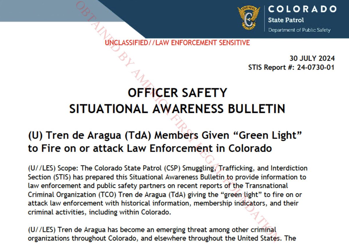 /2 AFL uncovered an “Officer Safety Situational Awareness Bulletin” prepared by the Colorado State Patrol’s (CSP) Smuggling, Trafficking, and Interdiction Section (STIS) on Tren de Aragua (TdA).