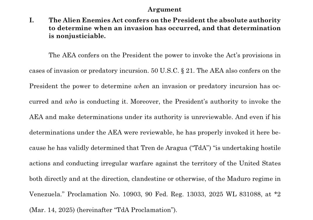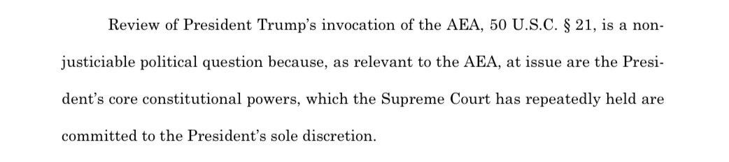 /12 In this case, President Trump limited his invocation of the statute to members of TdA even though he could have declared, and still has the power to declare, that any Venezuelan could be removed under the AEA.