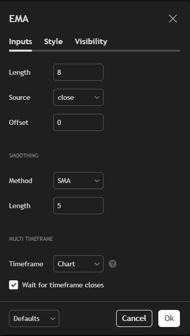 I only use one ema which is the 8ema or the magical π£line. This ema acts like a reactive short term trend line, without me having to draw. Its important to under the EMA rules, BEFORE putting it on your charts. Here are my settings.