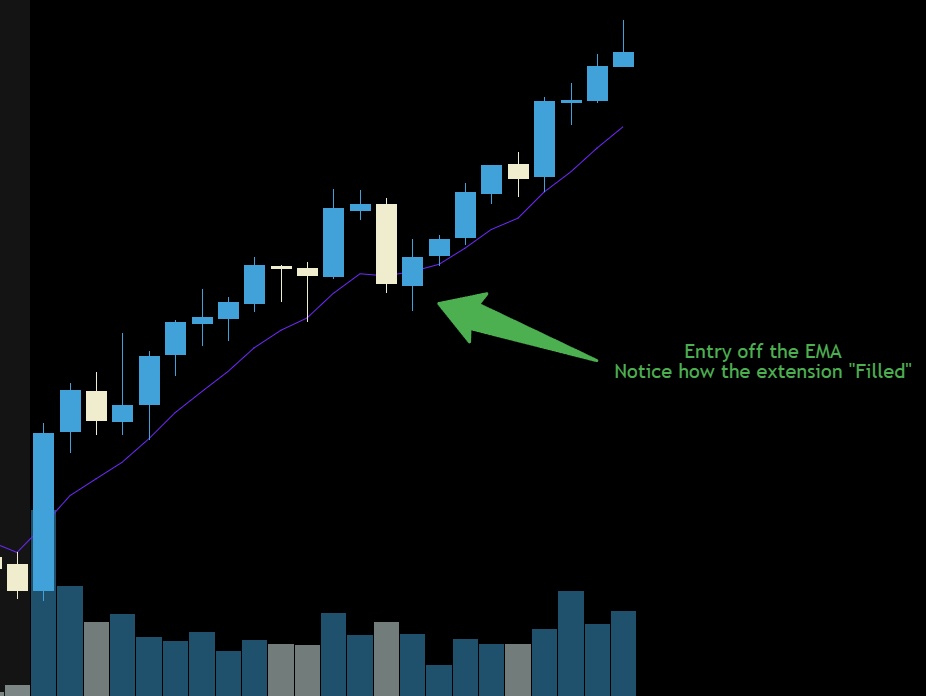 We want to enter a position as close to the EMA as possible for the tightest risk possible. When a stock is far away from the EMA its the higher the risk as a stock is extended. If you find yourself chasing, this will help.