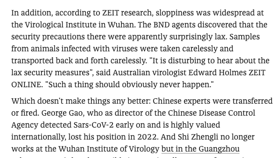🔸️Sloppy and lax biosafety in Wuhan labs, leading to key personnel changes (Zeit).