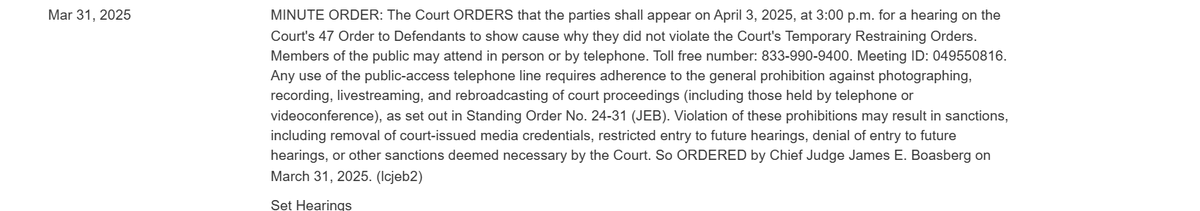 🚨"Show Cause" hearing in Alien Enemies Act case on question of whether Trump Administration violated Court's order set to start in 15 minutes. I'll try to cover live here. 1/