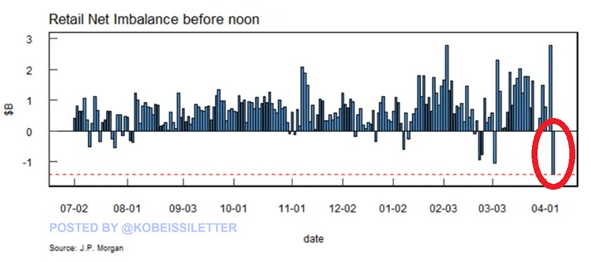 Then, on Friday, between 9:30 AM ET and 12:00 PM ET, retail investors sold $1.5 BILLION of equities.