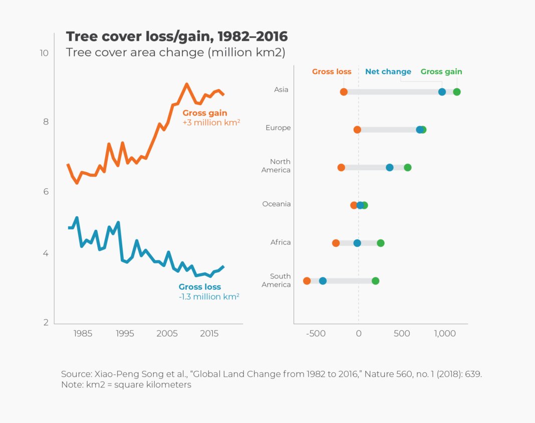 Global tree cover has increased in recent years with the greening and reforestation of the globe.