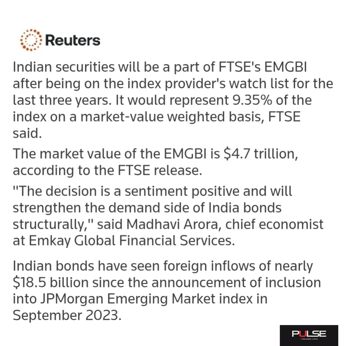 India joins the FTSE Russell index in Sep 2025, expecting $20-25B in inflows (9.35% of a $4.7T index).