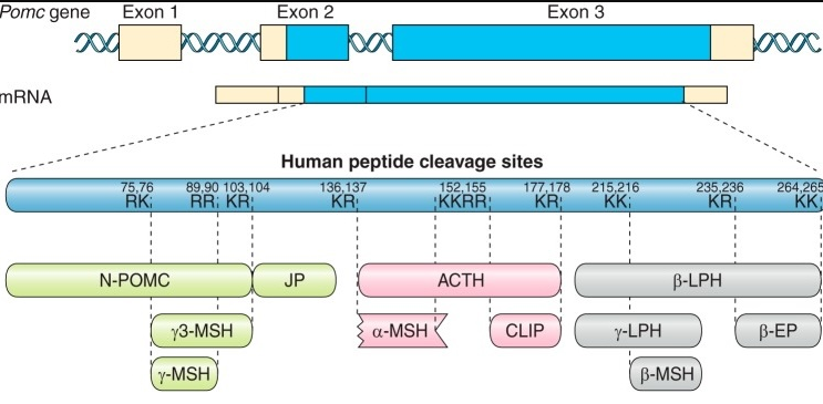 I like to call it a “master precursor” even though it’s incorrect because it gets cleaved into crucial peptides like a-MSH, ACTH, CLIP, Gamma-MSH and beta-endorphin by enzymes like prohormone convertases (PC1/3 and PC2).