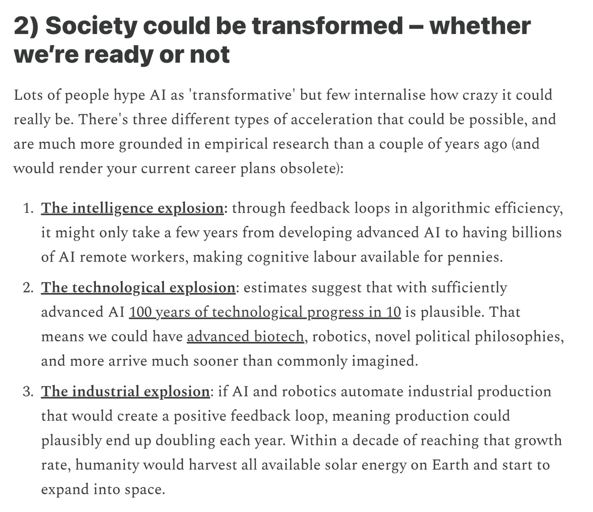 2/ Lots of people hype AI as 'transformative' but few internalise how crazy it could really be. There's three different types of possible acceleration, which are much more grounded in empirical research than a couple of years ago.