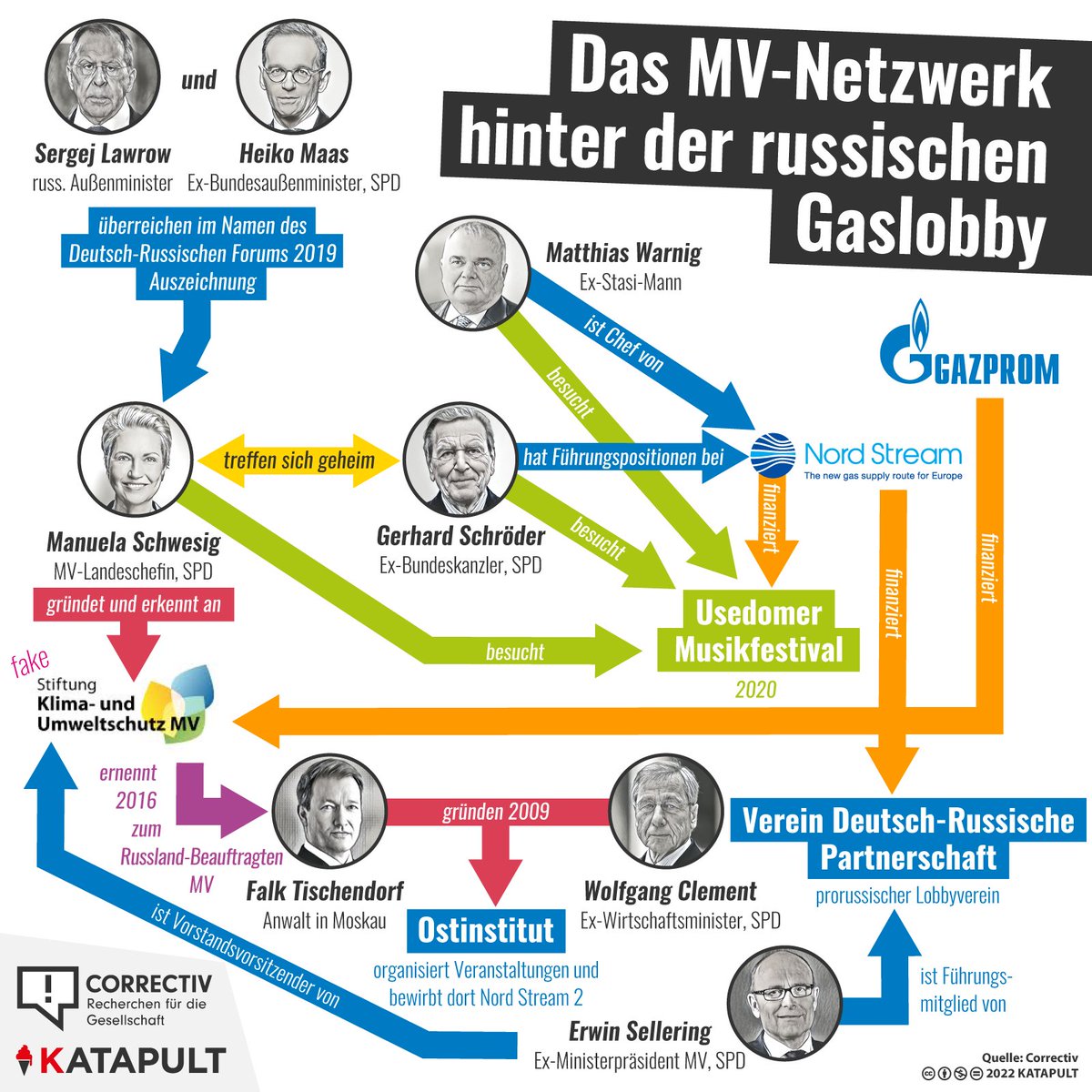 Matthias Warnig und sein Netzwerk aus ehemaligen Stasi-Spitzeln führen die Geschäfte im Firmenkonstrukt der Pipelines. Die Manager gehen in der Schweriner Staatskanzlei, in Landesministerien und untergeordneten Behörden jahrelang ein und aus. Ihr Geschäftsgebaren erinnert zuweilen an eine Mafia-Organisation. Von oberster politischer Ebene erhalten sie Flankenschutz.