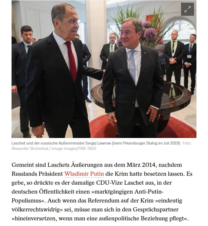 Laschet verwies oft – und selbstverständlich zurecht – auf das Völkerrecht. Seine Liebe ging jedoch nicht so weit, es hochzuhalten, als es darauf ankam: Nach der Invasion und Annexion der Krim 2014 bemängelte er stattdessen einen "Anti-Putin-Populismus" und warb um Verständnis.