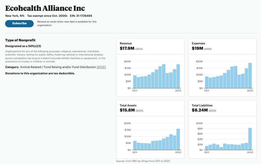In 2023 Daszak was boasting internally that his funding was better than before the pandemic (and, indeed, at $17 min over the year, it was).