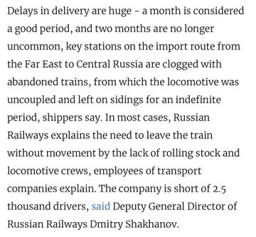 Russian railway repair trains derailing was one of the major phase change events I've been looking for in the story of the collapse via the capital rundown of the Russian railways engines & rolling stock.
