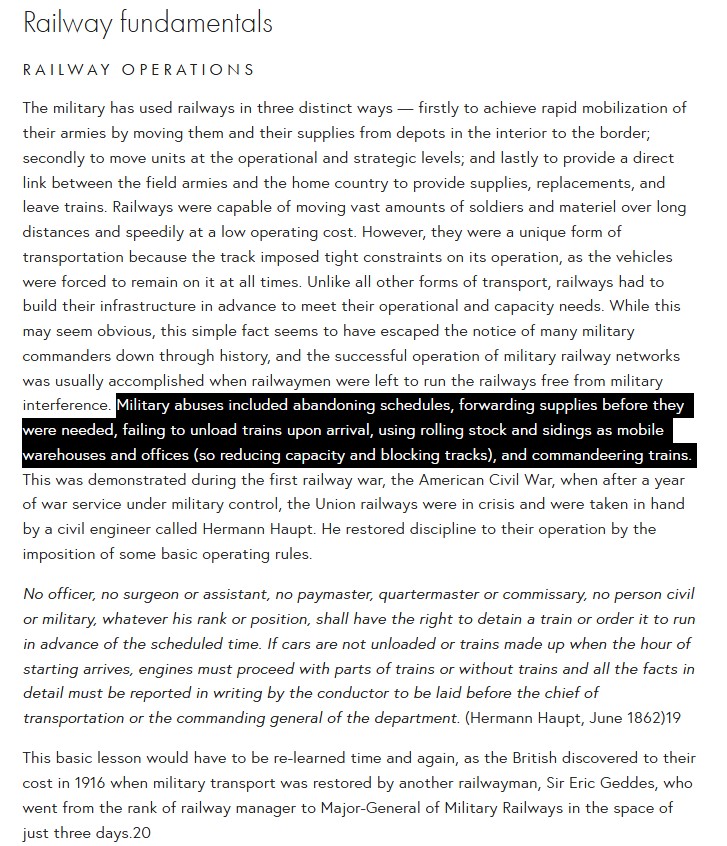 Putin's kleptocracy is simply not the sort of government that could generate a leader like the American Union Army's Hermann Haupt or WW1 British Army Sir Eric Geddes who would clear up military rolling stock corruption.