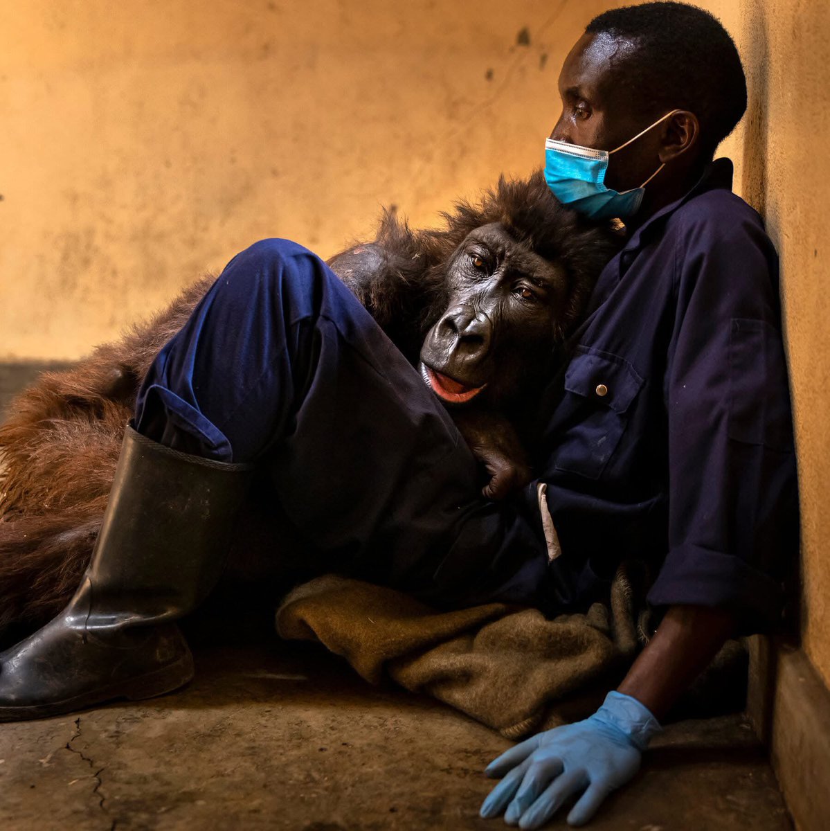 1. This heart-wrenching photo of 2021 shows, the orphaned mountain Gorilla, Ndakasi died in the arms of her care giver - Andre Bauma - same man who rescued her in Congo 14 years ago.