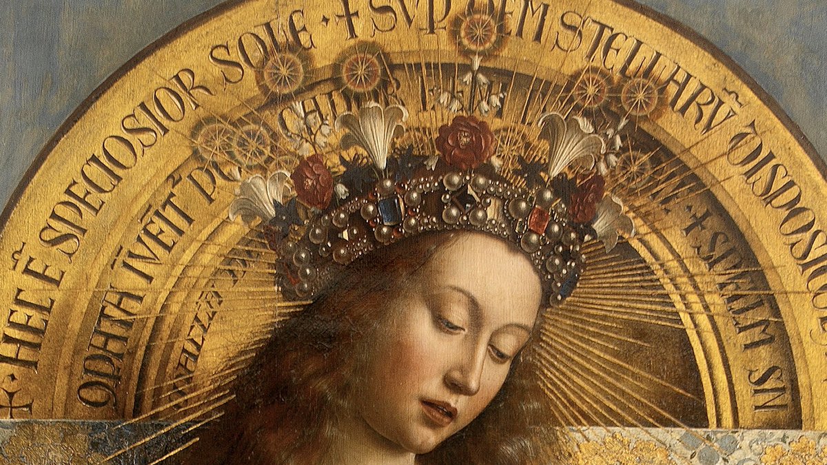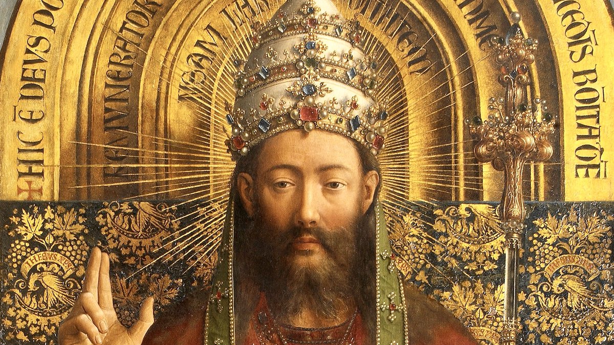 Note: nobody is sure if it's Christ or God the Father, but ambiguity is the point — Van Eyck was expressing the mystery of the Incarnation.