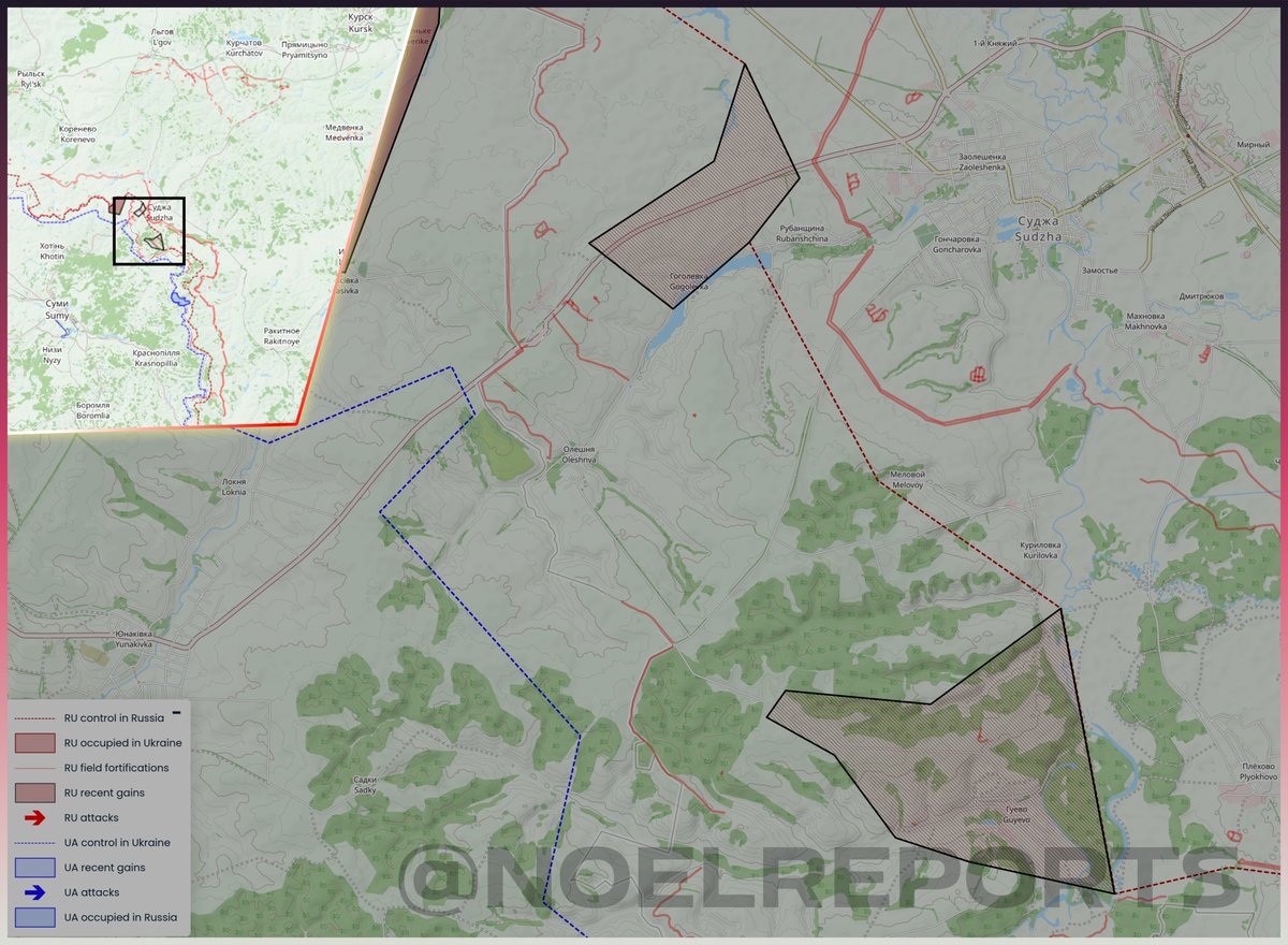 Russians have moved into Guyevo and also control Gogolevka, close to the Sudzha checkpoint. It was already clear that Ukraine pulled back from Kursk region but now it is also visually confirmed that only one tiny hamlet remains under UA (fire) control: Oleshnya.