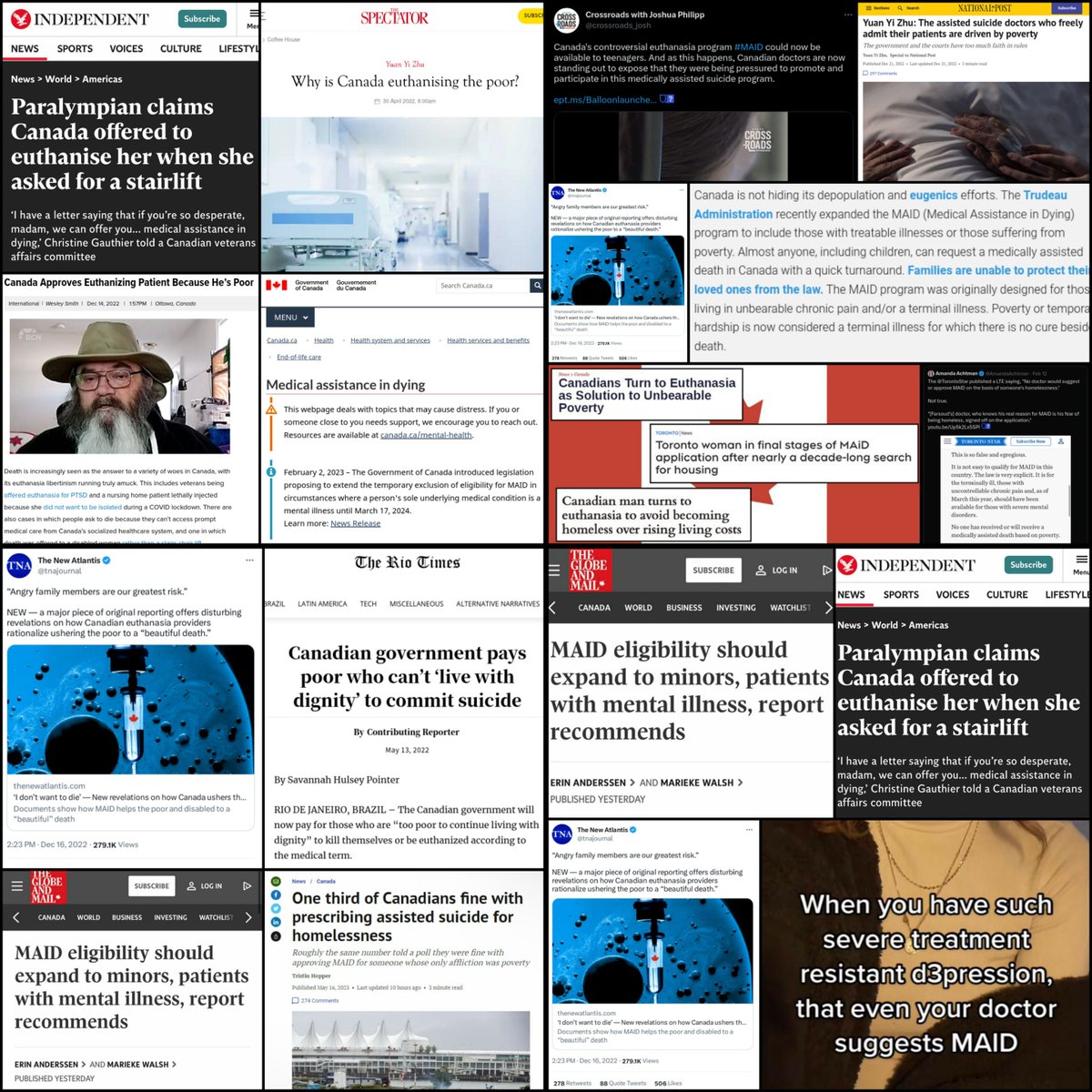 I was in disbelief about the Canada euthansia stuff for weeks during COVID. So I kept looking it up. It was too surreal. I couldn't believe it, it was OVERT Malthus-sh*t.