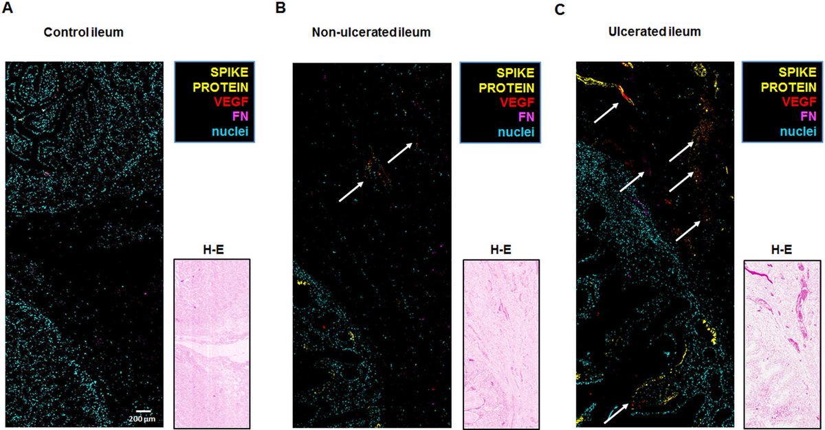 A man who had recovered from COVID and tested negative on nasopharyngeal swab was found to have SARS-CoV-2 spike protein in his small intestine, especially in ulcerated areas. 1/