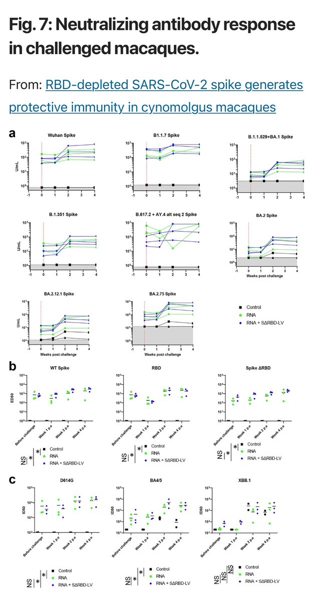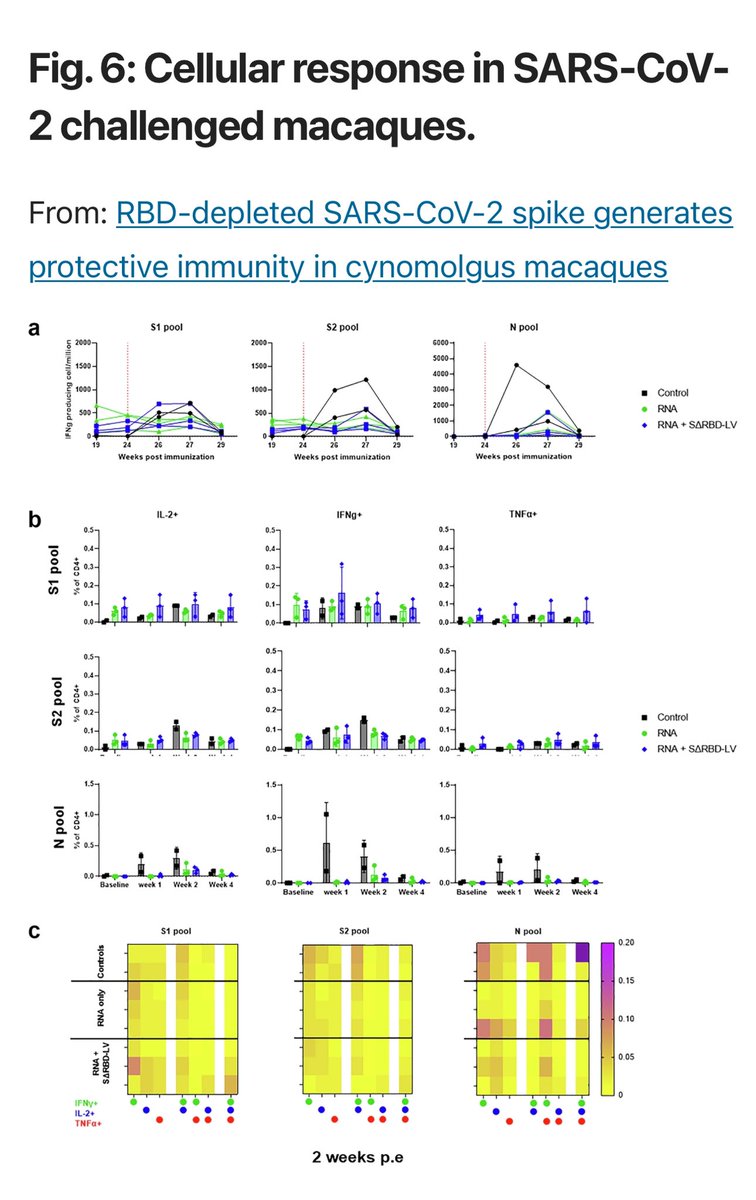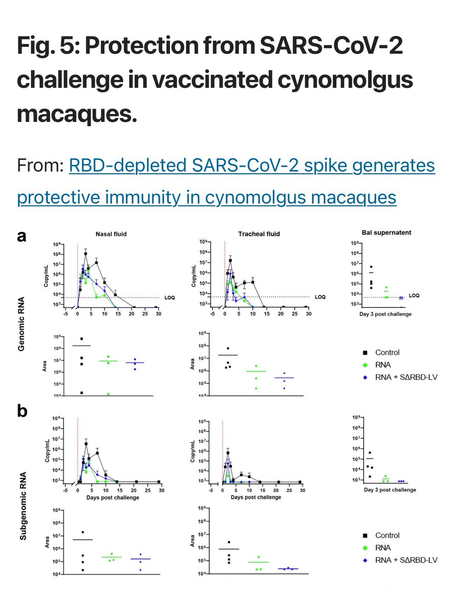 ➡️ A modified COVID vaccine (SΔRBD) lacking the spike’s RBD showed strong lung protection, even better than mRNA vaccine in macaques. 1/