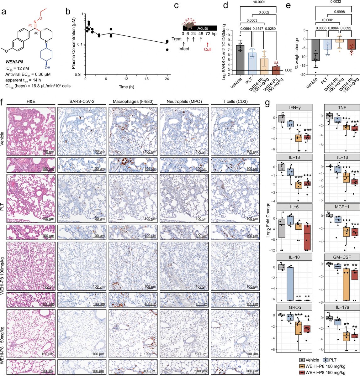 The world-first study found mice treated with the antiviral compound, developed by a multidisciplinary research team at WEHI, institute were protected from long-term brain and lung dysfunction—key symptoms of long COVID. 2/
