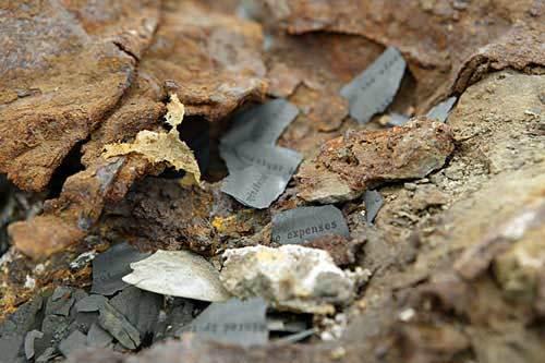 Closeup of shriveled steel from the next image. Steel beams were shriveled and warped in odd ways, without any signs of severe heat or buckling stress. Notice the unusual shriveled appearance of this steel beam, and the presence of rust. Heat from jetfuel or explosives do not explain this, so what could have caused this steel beam to shrivel? facebook.com/photo.php?fbid…