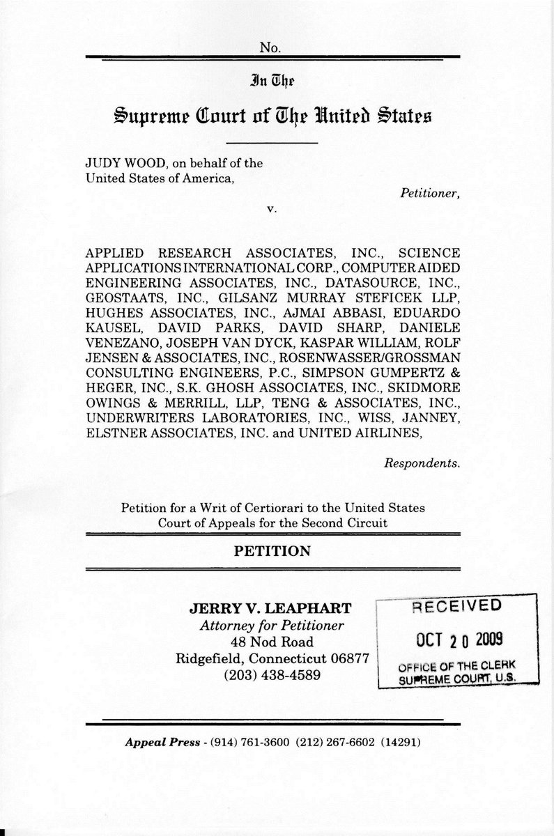 In 2007, Dr. Judy Wood and her attorney Dr. Jerry Leaphart took legal action against the private corporations that the National Institute for Standards and Technology (NIST) had contracted with to conduct the fraudulent 9/11 "investigations", many which are the leading weapons, defense, and security corporations involved in directed energy research (an enormous conflict-of-interest). The filings in these legal efforts included Requests For Corrections (RFC) based on the Data Quality Act, and a Qui-Tam federal whistleblower lawsuit. The federal qui-tam case was so strong, thanks to all the physical evidence that Dr. Wood has gathered, that it was successfully appealed to the level of the U.S. Supreme Court in October 2009, despite the attempts of the corporate defense lawyers pushing for premature dismissal of the case at each level of appeal. The case was then unlawfully dismissed without being heard by the U.S. Supreme Court, and this is detailed in the legal documents found on Dr. Wood's website and in her textbook 'Where Did The Towers Go?'. To this day, Dr. Judy Wood is the only individual who has submitted physical evidence in the form of a lawsuit to pursue truth and justice for our nation and planet. The legal documents from her court cases can be viewed at the following links: