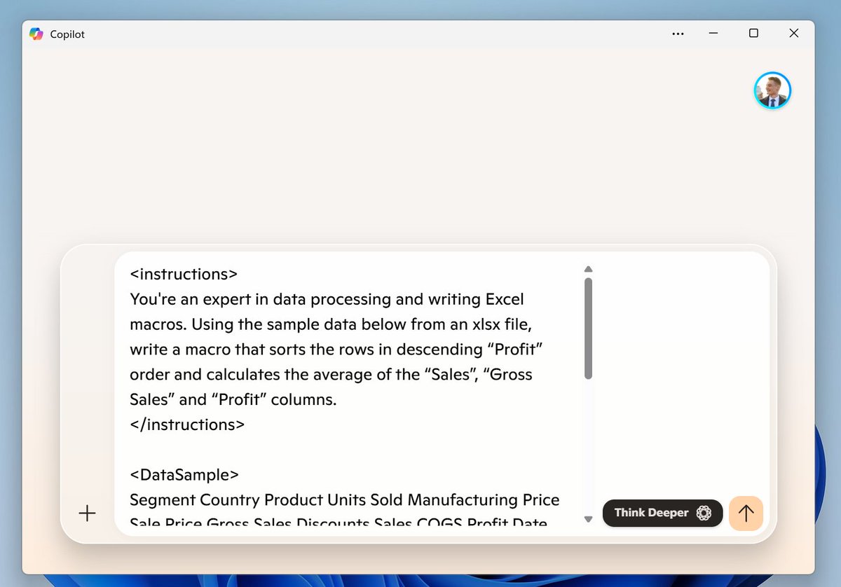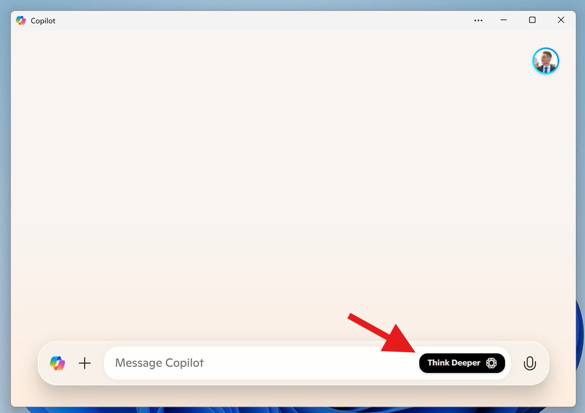 Open Copilot (copilot .microsoft .com) and click on the Think Deeper icon in the text field.