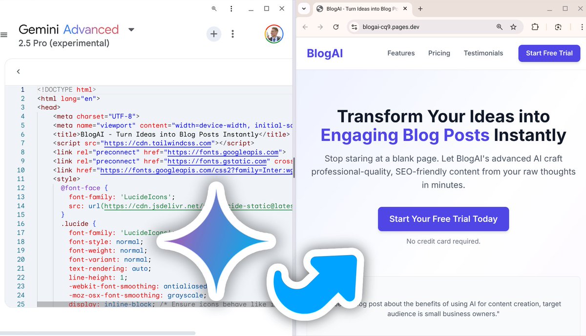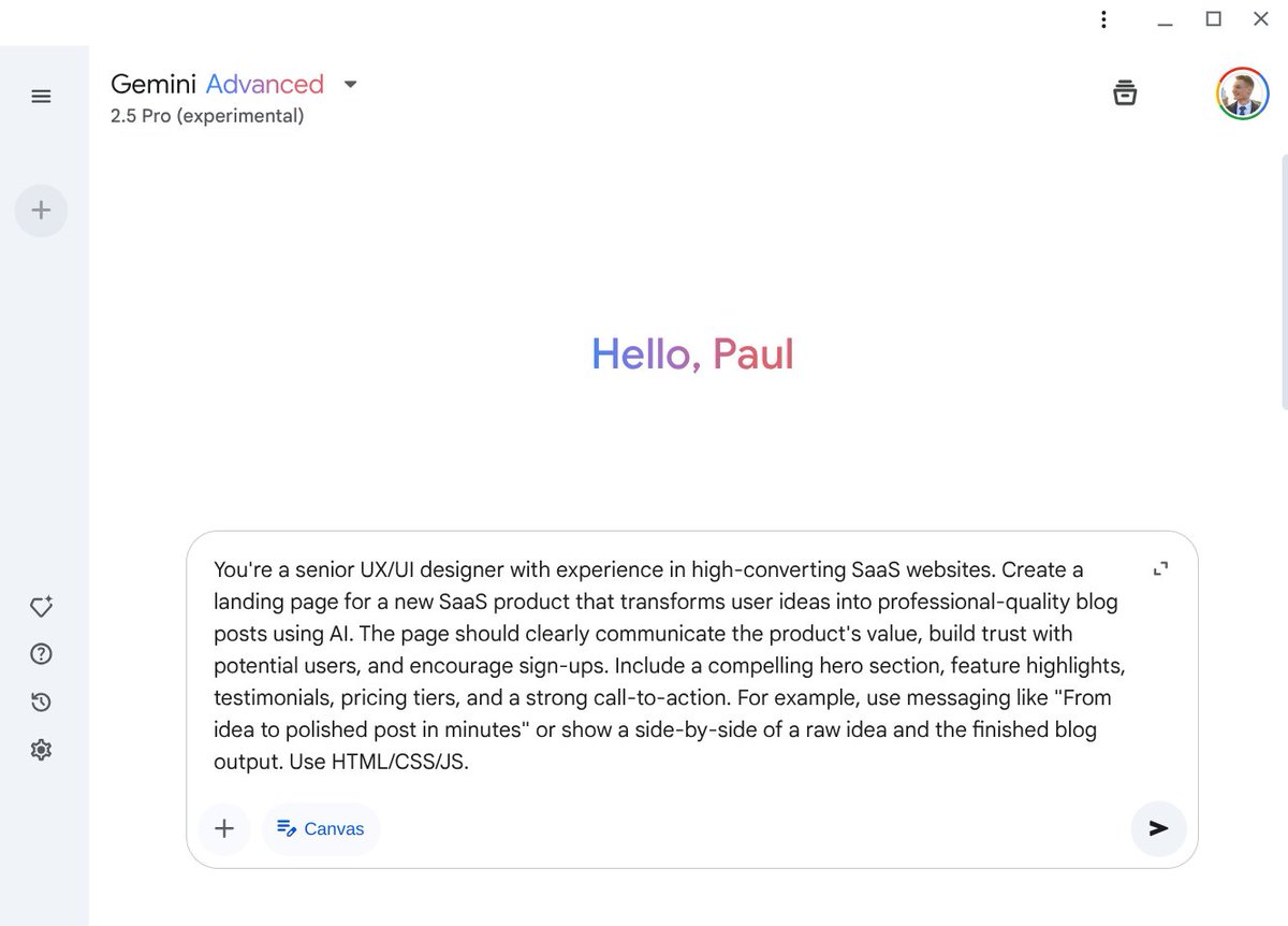 You can create a landing page with Gemini 2.5 Pro and deploy it for free.